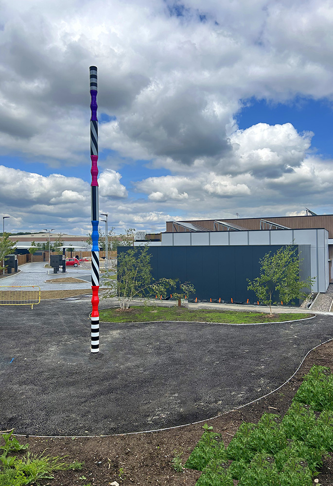 Installed on the former Rediffusion site where the artist's father used to work during the 1970-90s. The 'totems' tell a personal story about planting seeds, bedding roots, and hoping what grows from it will endure. The urn shaped forms are inspired by Keats’ Ode on a Grecian Urn.
